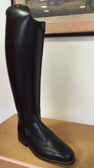 Der neue Petrie Elegance ist ein schwarzer Dressurstiefel aus Kalbsleder mit einer 6 cm hohen Schaftkappe. Der Stiefelschaft hat durch die innenliegende Positionierung des Reißverschlusses eine wunderschön elegante und schlanke Passform. Eine weiche Gummipolsterung sorgt für Halt und verhindert Druck auf den Knöchel, sodass der Stiefel eng am Knöchel anliegt. Der Stiefelschaft ist mit Kalbsleder gefüttert, das innen weich und außen fest ist.