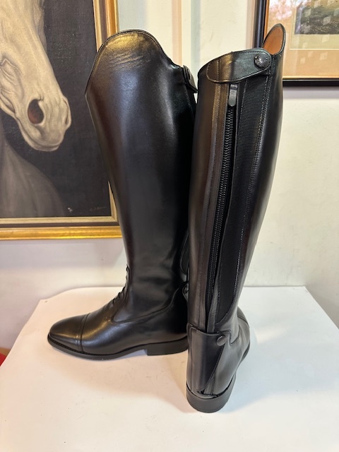 Dieser Aberdeen J718 Aberdeen Schnürstiefel mit elastischem Einsatz, schwarzem Rindsleder, UK 6.0 (US 8.0), 45 cm Schafthöhe, 43.5 Wadenumfang und 41.5 Knie