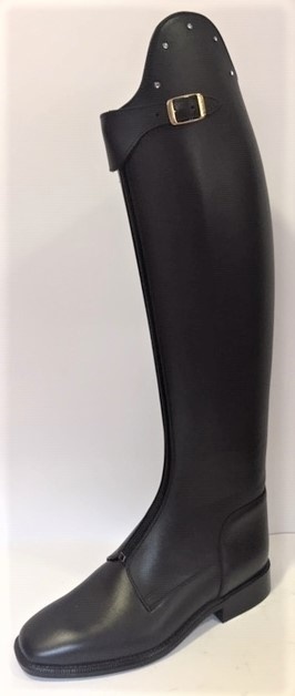 Dieser Stiefel ist der Polo Boot Athene P343 aus schwarzem Rindsleder mit Swarowski-Steinen, Größe 5,0 (US 7,5), Schafthöhe 47 (hinten ohne Absatz), 51 cm außen und 36 cm Wadenumfang, maßgefertigt.