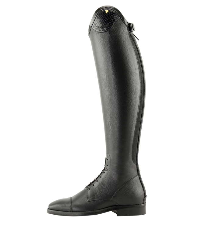 Der Petrie Luca ist ein bequemer Allround-Schnürstiefel aus weichem Nappaleder, erkennbar an der charakteristischen Wabenverzierung mit Swarovski-Details. Dieser Stiefel kombiniert einen sportlichen Look mit hohem Tragekomfort und wurde für Reiter entwickelt, die einen unverwechselbaren, aber funktionalen Allround-Reitstiefel suchen.