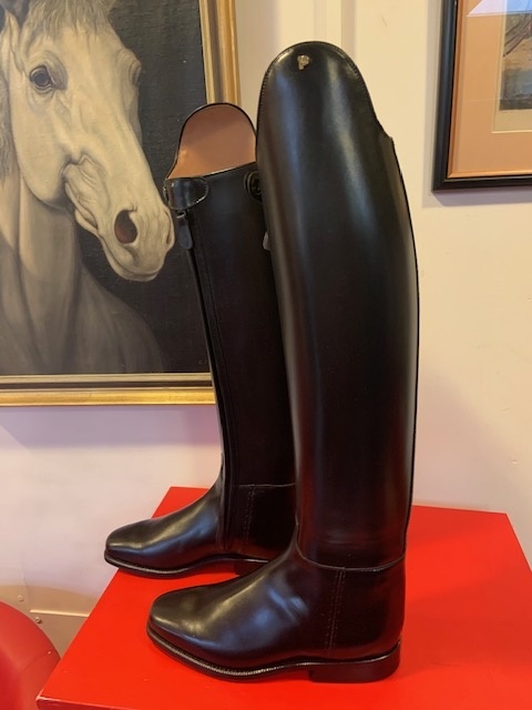 The Anky Elegance D009 in black calf leather dressage boot is a UK size 6.5 (US size 8.5) shaft height 49cm at the back (without heel) and 55 at the outside and calf outline 35.0cm and crook of knee of 34.0cm