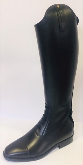 The Petrie Coventry is a lace-up Jumping boot with a rear zipper down the calf and a protective edging making it easy to slip on and off. A very flexible boot with a very tight fit throughout, even around the ankle.The shaft with its calf leather lining gives a great grip and good contact with the horse. There is an extra zipper guard and the heel protector, specially designed for spurs also protects the zipper.