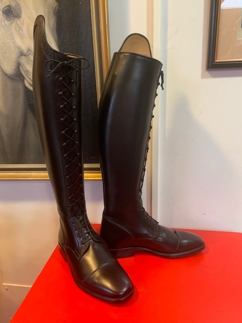 The new Milaan is made of fine smooth calf leather with a fully calf leather lined bootleg. The Milaan has no zipper, but is completely multi functional laced in the front. It has a own and special design toecap and whipholder. The boot is extremely slim around the ankle!