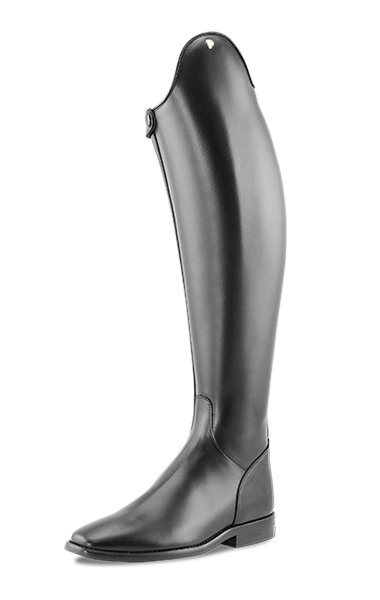 Petrie Bergamo Nubuck is a cow leather dressage riding boot with a 7cm high bowl and zipper and stiffer at the outside of the shaft.. The boot has a snug fit throughout, even around the ankle and is extraordinarily elegant. The Petrie Bergamo has a calf leather lining. Demanding riders will find the special comfort footbed and slim ankle fit very useful. The Ago glued sole has a non-slip profile sole and is extremely durable. Available in a range of sizes/fittings ( see below) and will not produced as a made-to-measure boot. Available in black, brown, blue , grey and oliv
