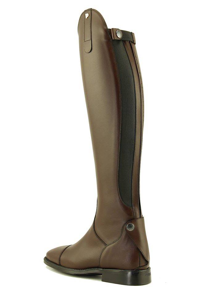 Petrie Padova is a cow leather dressage riding boot with a 5cm high bowl and zipper on the inside and elastic inlay at the outside of the shaft.. The boot has a snug fit throughout, even around the ankle and is extraordinarily elegant. The Petrie Padova has a leather lining and suede lining at the inside. Demanding riders will find the special comfort footbed and slim ankle fit very useful. The Ago glued sole has a non-slip profile sole and is extremely durable. Available in a range of sizes/fittings ( see below) and will not produced as a made-to-measure boot. Available in black, brown, cognac and blue