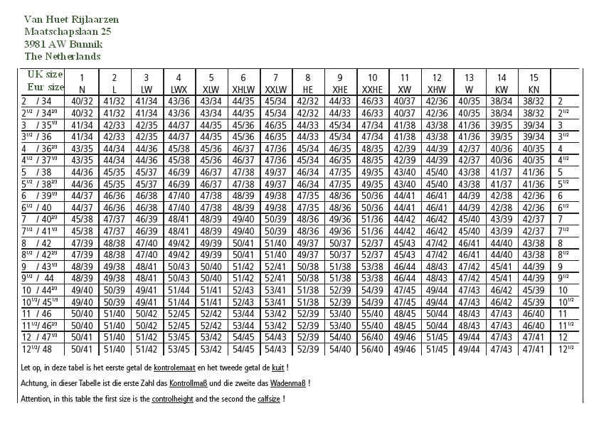 | Artikel | Model | Type | Uitvoering | Prijs | UK | Schacht | Kuit | Advies |